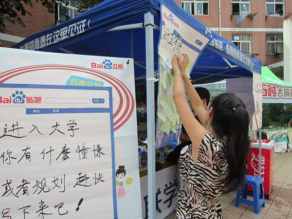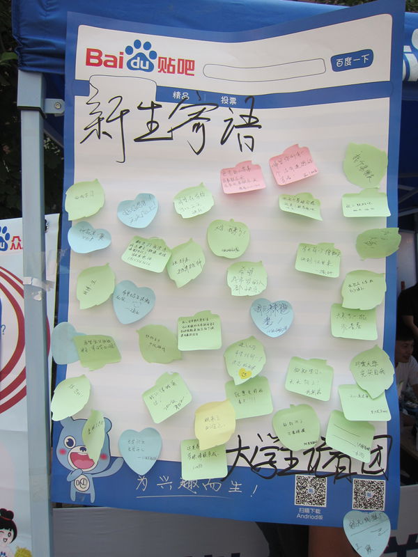 “彪悍的青春,在这里见证”、“大不了,一起秀青春”等新生们的话语言简意赅的表达了对未来,对青春美好向往;望子成龙,望女成凤,家长们对于子女的殷切期盼溢于言表。而未来怎样,就要看这群充满青春活力的新生们的行动了!(大学生记者团 洪敏/文 郑杰/图)