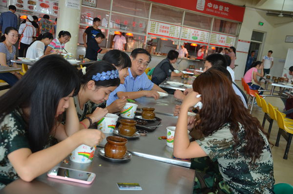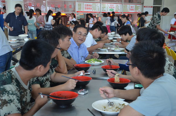 秋风送爽时,新生报到来。9月9日-10日, 学院2013级新生报到。为详细了解新生在学校的适应情况,9月11日中午,常务副院长易佑民在科研处处长王根杰、综合办相关工作人员的陪同下,去学校食堂看望新生。