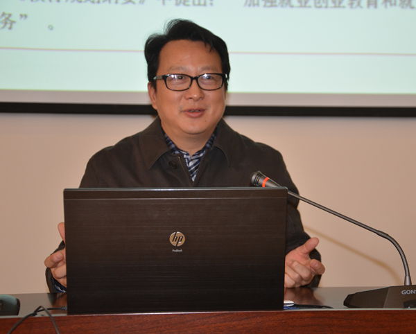 报告会上,鲍勇围绕就业形势和就业指导两大主题,从就业形势和就业政策、加强科学就业观教育、完善创新创业教育三方面展开,以详实的数据及图片资料对当前高校毕业生就业的形势进行解读,并就如何做好高校毕业生就业工作进行分析指导。报告还从毕业生就业的有利因素与不利因素角度出发,解读了国家围绕高校毕业生就业出台的最新政策,指出科学就业观对大学生职业生涯发展的重要影响。