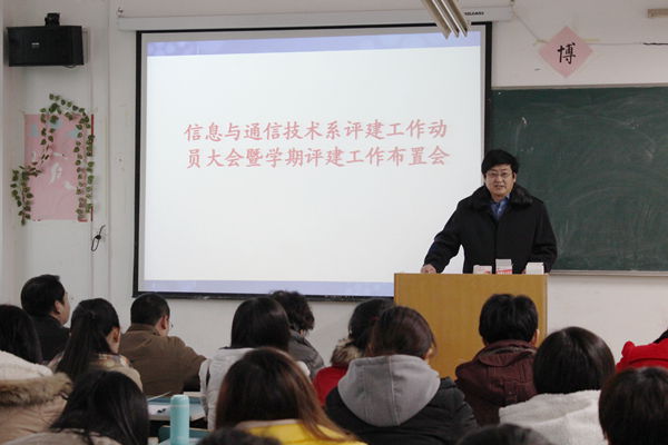 2月24日,信息与通信技术系召开评建工作动员大会暨学期评建工作布置会。院党委副书记鲁先长出席大会,该系主任方敏教授、常务主任薛峰等系领导班子成员与全系教职工参加会议。