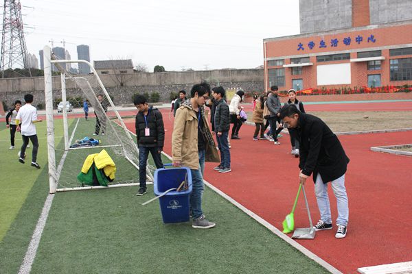 “学雷锋”志愿服务小组打扫操场卫生、清理宣传栏
