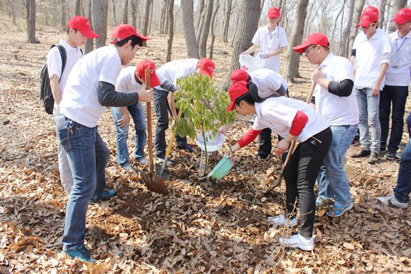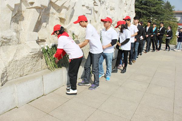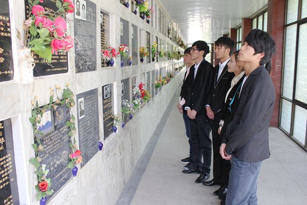 参观后,我院学子们自发的在陵园内进行环境保洁工作,将游客丢下来的垃圾和那些枯草枝叶等拾到垃圾桶内。并在山后种下了几十棵纪念树,为每一株小树苗上挂上了一块写着栽种人姓名、认种寄语的红绸。