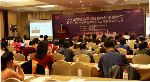 本次会议由黄山学院经济管理学院承办,主题是探索经管学科专业如何推进产学研合作创新人才培养模式。来自安徽省21所经管学科联盟理事单位(经管院系)领导、专家学者70余人和省外18所高校经管院系专家学者60余人参加了会议。