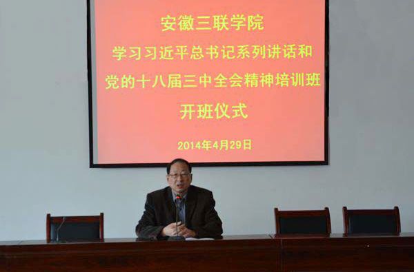 院党委书记桂宁东在会上作开班动员讲话。他说,学习宣传贯彻习近平总书记系列讲话和党的十八届三中全会精神,是当前和今后一个时期全省教育系统的首要政治任务。按照省委和省委教育工委统一部署,学院决定在六月底前对全院科级及以上干部进行学习培训。他就学习的意义强调两点:一是中央和省委组织领导干部学习,是为了实现全面建成小康社会和完成全面深化改革的目标任务,进行的理论准备和思想准备,把全党的思想行动统一到中央的精神和部署上来。二是我们重点学习关于教育和教育改革的内容,全面了解教育改革的内容和要求,对推动学院改革发展非常必要。教育改革为民办教育和民办高校发展提供了第二次重大机遇,如何抓住机遇,就需要了解全局,趁势而上,顺势而为。要求大家重视这次学习培训,认真学习。