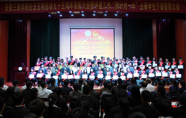 一年多以来,学院团学组织全面学习贯彻党的十八大和十八届三中全会精神,在思想引领、服务青年成长成才和社会实践与志愿服务、团组织建设等方面取得了可喜的成绩。今年恰逢纪念“五四”运动95周年,同时也是学院迎评促建的关键之年。全院师生的目标是一致的,那就是:学院发展,顺利通过教育部本科教学合格评估。我院青年要在提高自身能力素质的同时,为“中国梦”的实现、为学院评估工作努力做出贡献,用青春书写三联学院新的发展的壮丽篇章。(撰稿、摄影:周新 编辑:邱彦铭)