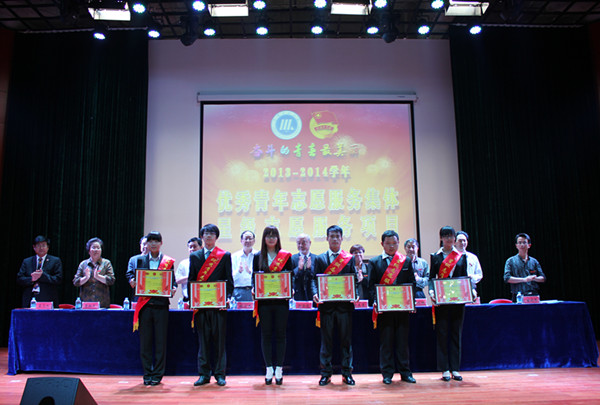 院团委副书记李燕宣读了表彰文件。大会表彰了2013—2014学年优秀共青团员、优秀共青团干部、五四红旗团支部,2013年度优秀青年志愿者、优秀青年志愿服务集体奖项、星级志愿服务项目及“爱校教育”征文获奖选手。优秀共青团干部代表吴琦、优秀青年志愿者代表庞海南同学发言,分别介绍了自己的成长经历及组织建设经验。
