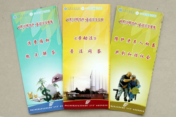 7月10日,正值我校2014届本科生毕业典礼,社会实践服务团的志愿者们通过海报、宣传单页等形式开展禁毒知识宣传活动,向即将步入社会的同学生们宣传我国《禁毒法》的相关知识。发放了千余份《劳动法》普法问答三折页宣传单等,通过生动的问答为同学们解疑释惑,为今后工作中合理合法维护自己的劳动权益提供了有益参考。志愿者们在宣传单最后深情写到“祝福你们,一帆风顺,前程似锦!”