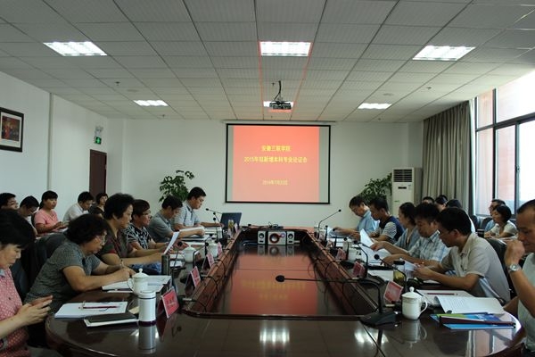 7月23日,学校召开了2015年拟新增专业论证会。常务副校长金美莲、副校长曹艳平出席会议。会议特邀省社科院杨俊龙副院长、安徽医科大学王维利教授、安徽建筑大学陈杰教授、合肥学院胡晓军教授等九位校内外专家组成专业论证小组。各拟新增专业单位主要负责人和学科带头人(含培养对象)、申报材料执笔人,教务处负责人及相关人员参会。会议由副校长姜发根主持。