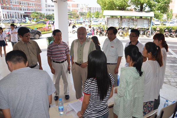 9月4日,是我校2014级新生报到的第一天,校园里处处洋溢着迎新的喜悦气氛。校长金会庆教授在校党委副书记鲁先长、副校长王瑞友等领导的陪同下,深入迎新一线亲切慰问工作人员,并看望前来报到的新生。(撰稿、摄影、编辑:隋欣)