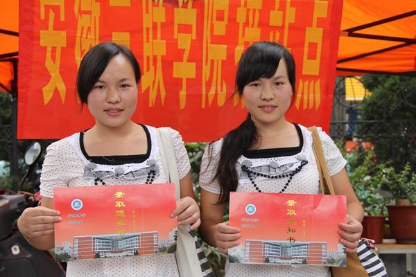 高考结束后,通过网络查询、家长指导,姐妹俩了解到我校护理学院的护士资格证通过率100%,就业率100%,是时下热门专业,于是姐妹商议共同填报我校的护理专业。据了解,护理专业在安徽省只收90名理科生,姐妹俩填报后非常担心,多次向我校招生办打电话咨询录取情况,可喜的是,两人真的同时被录取了,于是迎新现场就出现了这对双胞胎姐妹花同时在同一个专业报到的别样风景。