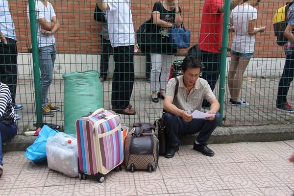 天气炎热,父母、长辈为了孩子,他们是开心的,忘记了脸上的汗水。