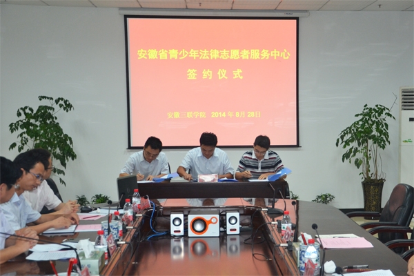成立大会上,中心发起单位安徽三联学院、安徽省青年法律工作者协会、安徽省青年志愿者协会共同签署了合作框架协议,并宣布了理事会及中心主任、副主任名单。