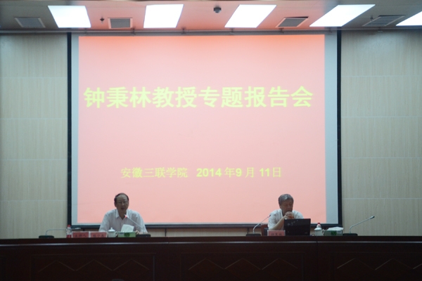 教育厅副厅长李和平做重要讲话,他首先表示钟教授来到安徽、来到三联学院指导工作,不仅是对三联学院的支持,也是对安徽高等教育的支持,同时感谢钟教授来我校作重要报告。他指出,钟教授的报告以高校的内涵发展与质量建设为出发点,从高校的发展道路、危机挑战以及解决思路等方面进行拓展,提出了自己独到的见解,为高校在面对复杂问题时提供了系统的解决方案和出路,他希望我校以钟教授的报告为新起点,认清形势、以评估为契机,进一步提升我校内涵发展和质量建设。