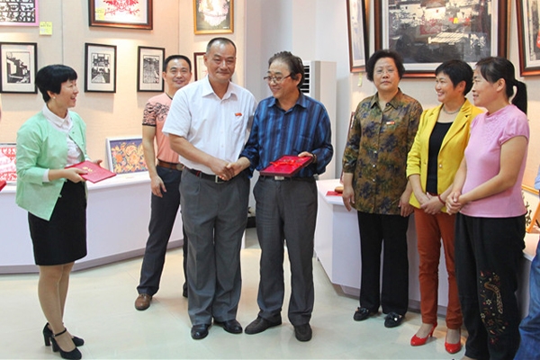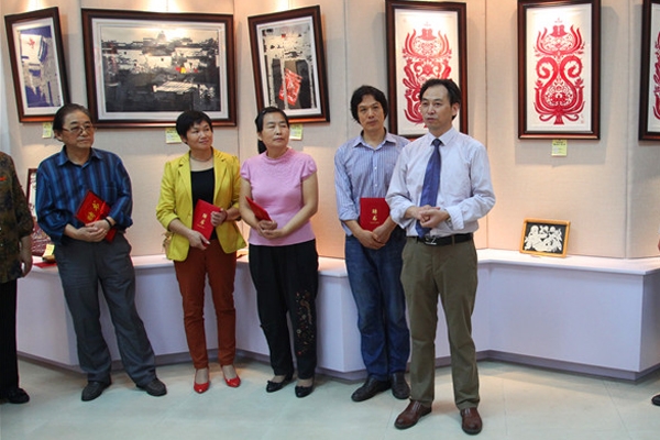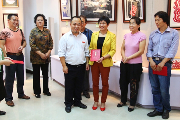 出席展会的还有安徽省非遗保护发展中心黄先有主任,中华文促会剪纸艺委会理事、阜阳剪纸艺术研究会王侠颍副会长;淮南市工艺美术协会剪纸研究会周琴会长;民间艺术家、合肥中华文促会剪纸艺委会朱山中秘书长及三联学院有关校领导。