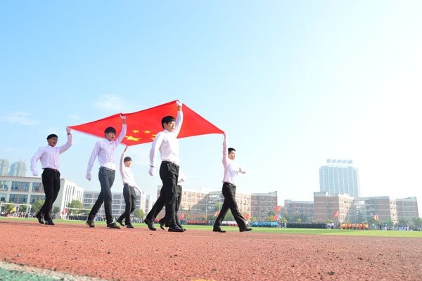在激昂的运动会进行曲中,在旗帜、鲜花方队的引领下,共计17个运动员方阵迈着矫健的步伐依次入场,他们着装统一,口号嘹亮,朝气蓬勃,赢得阵阵掌声。