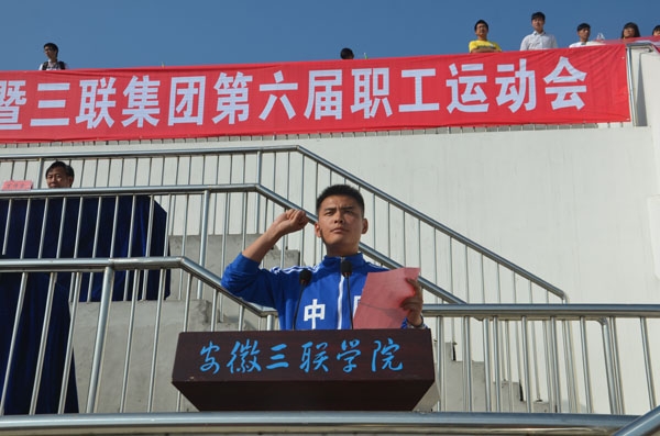 金会庆校长在致辞中首先向精心筹备运动会的工作人员表示诚挚的感谢,向全体运动员、教练员、裁判员表示亲切的问候。金校长指出,运动会是彰显三联师生员工时代风采的窗口,是传承三联精神的重要途径。同时强调要通过体育运动,相互传递追求卓越、突破自我的正能量,不断增强团结奋进、攻坚克难的凝聚力,始终激发锐意进取、力争上游的精神状态,努力在推进三联各项事业发展的征程中迈出更大步伐。最后,金校长预祝全体运动员取得优异成绩,预祝本届运动会取得圆满成功。