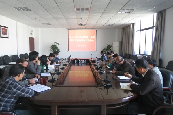为加强学生管理,切实保障学生安全,11月4日下午,我校组织召开了2014-2015学年度第一学期第三次服务学生工作例会。校领导金美莲出席会议。会议由副校长王瑞友主持。