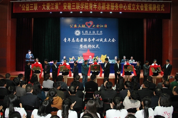 11月12日,安徽三联学院青年志愿者服务中心成立大会暨揭牌仪式在我校图书馆多功能厅隆重举行。团省委副书记李国阳,校领导金会庆、桂宁东、秦永元、曹艳平、王瑞友、操晓峰及省博物院等青年志愿者合作单位领导共同出席大会。大会由校党委副书记鲁先长主持。