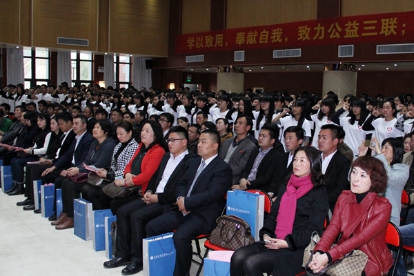 金会庆校长首先致欢迎词。金校长对一直关心、支持三联学院发展的领导和嘉宾表示了诚挚的感谢,并衷心希望全校广大青年志愿者们能够充分利用青年志愿者服务中心这个平台,发挥自身的知识优势和技术特长,立足校内,面向社会进行服务,力所能及的为有特殊困难的同学以及城乡社区、人民群众提供志愿服务,为城市发展、社区建设、企业帮扶、抢险救灾及大型社会活动等公益事业提供志愿服务。