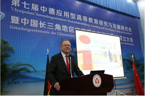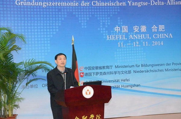 11月11日至12日,由安徽省教育厅、德国下萨克森州科学与文化部主办,合肥学院、黄山学院承办的第七届中德应用型高等教育研究与发展研讨会暨中国长三角地区应用型本科高校联盟成立大会在合肥学院举行。来自德国和国内近百所高校、企业代表400余人参与了此次研讨会。德国下萨克森州政府州长施特凡•魏尔、国务秘书比尔吉特•霍内,安徽省外办张箭主任,教育厅程艺厅长等出席。会议由安徽省教育厅李和平副厅长主持。我校教务处蔡文芬处长、罗忠副处长等三人应邀参加了会议。