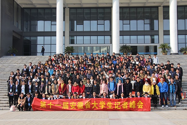 由安徽省青年新闻工作者协会、安徽省高等学校校报研究会主办,合肥学院、安徽青年报社承办的以“以回归之名”为主题的安徽省第十一届大学生记者峰会于12月7日在合肥学院拉开帷幕,安徽省教育厅思政处副处长王后林、合肥学院领导洪家友及安徽青年报等社会媒体代表莅临本次会议,我校大学生记者团成员代表及中国科技大学、合肥工业大学等全省六十余所高校学生记者代表参加此次峰会。