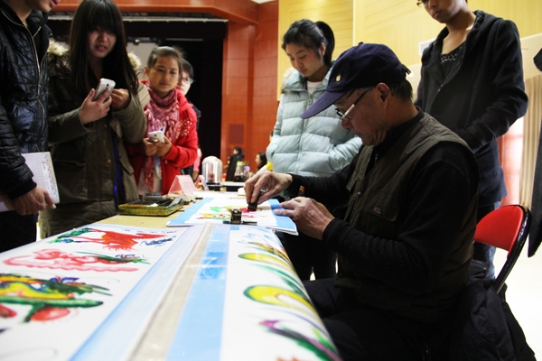 活动中,非遗艺术家们进行了现场教学与授徒,将基本的传统工艺教授给有兴趣的同学们,同学们受益匪浅。