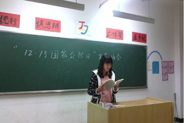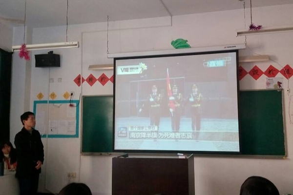 外语学院、电子电气工程学院和人文经济学院等在各班级开展了以“缅怀遇难同胞 缅怀革命先烈”为主题的班会,班会讨论热烈,内容丰富。同学们通过起立默哀,向30万遇难同胞表示了哀悼,向为国家和民族英勇献身的烈士表示了崇高敬意。观看纪录片使同学们更加深刻的了解了历史,同时坚定了勿忘国耻,振兴中华,发扬烈士们的爱国主义精神,为祖国的建设贡献自己的一份力量的信念。
