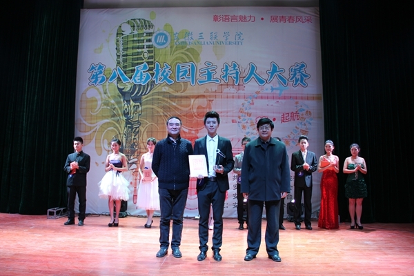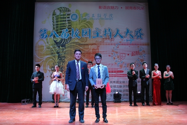 12月19号晚,安徽三联学院第八届校园主持人大赛在图书馆多功能厅圆满落下帷幕,大赛以“梦·起航”为主题,展现了我校学子追梦之路的拼搏精神。本次大赛特邀合肥广播电视台副台长、合肥电视艺术家协会副主席曹亦农、安徽省学生联合会驻会主席姜永俊等担任评委,校领导鲁先长、王瑞友、姜发根及二级学院党总支书记、团总支书记、各学生组织骨干代表参加了本次活动。