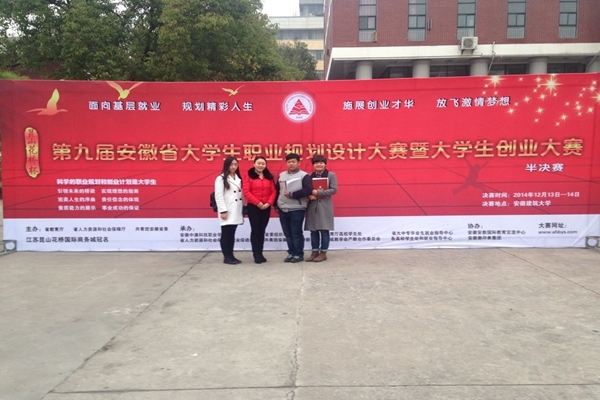 11月30日,“昆山华侨杯”第九届安徽省大学生职业规划大赛暨大学生创业大赛半决赛在合肥举行,我校以何婷婷为代表的就业组和以周浩儿、涂大磊为代表的两支创业组参加此次比赛。经书面作品评比(职业规划书、创业计划书)和现场展示(PP演示课件、职业情景模拟或创业实战模拟视频)等两个环节,三支队伍均获得铜奖。