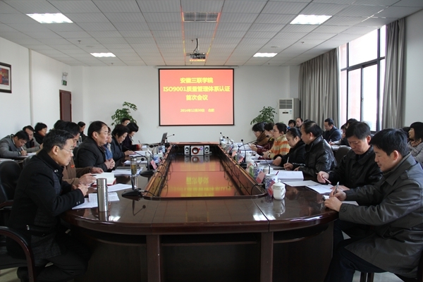 2014年12月30~31日,中国检验认证集团安徽有限公司的认证专家组一行8人对我校进行了为期2天的ISO9001:2008质量管理体系认证现场审核。审核工作得到校领导的高度重视和相关职能部门、教学单位的通力合作,常务副校长金美莲代表金会庆校长对专家组的到来表示热烈欢迎,并全程参加了认证审核工作。