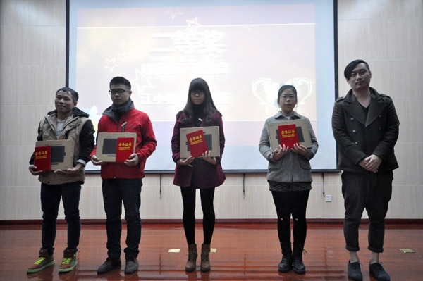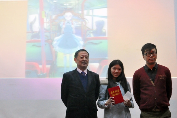 大赛分为“临摹二次元”、“二次元角色再造计划”和“‘我身边的XX君’二次元拟人校园随手拍”三项内容。自比赛征稿以来,收到了来自我校艺术学院、商学院、交通工程学院、计算机工程学院等学生作品400多份,经过校内外5名专家评委的层层筛选,共产生特等奖等21名。颁奖仪式特设优秀作品点评环节,评委代表上海一沙数码科技有限公司执行艺术总监王九斤和上海联岸信息科技有限公司艺术总监俞杨先生分别对特等奖、一等奖作品进行点评。来自我校艺术学院的12级影视动画专业的吴杨家安同学表示,通过参加这次比赛,不仅锻炼了自己的创作能力和创新意识,通过比赛还让他有意外收获—认识了更多校外的动漫爱好者。