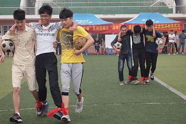 2015年5月9日上午,校足球协会承办的“中国梦·文化魂”系列活动之“激情足球·缘起蹴鞠”趣味足球赛隆重拉开帷幕。此次足球赛旨在弘扬与传承中华蹴鞠文化,增强广大青年学生加强体育锻炼的意识,实现寓教于乐。本着“友谊第一,比赛第二”的原则,参赛学生们在这次趣味足球赛中拼尽全力,为自己的班级赢得荣誉,在轻松有趣的氛围中增强了集体荣誉感。经过激烈的角逐,最终,14级机械(5)班获得了冠军,14级机械(3)班获得了亚军,14级交通工程(2)班获得了季军。