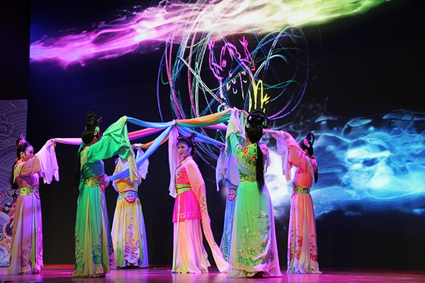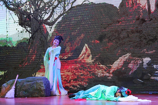 大型现代黄梅戏《天仙配》首次亮相安徽三联学院,与我校师生见面。LED的3D背景墙、唯美的艺术唱腔、适时的灯光效果,营造出一种全新的演出效果。演出通过鹊桥、路遇、上工、织绢及分别五个场景形象生动的讲述了《天仙配》的神话故事。催人泪下的故事,出色的表演,将每一个角色都诠释的淋漓尽致。演员舞姿翩翩,观众掌声连连。整场演出将现代科技与传统文化完美结合,充分展现出以《天仙配》为代表的徽文化这朵艺苑奇葩的内在魅力。