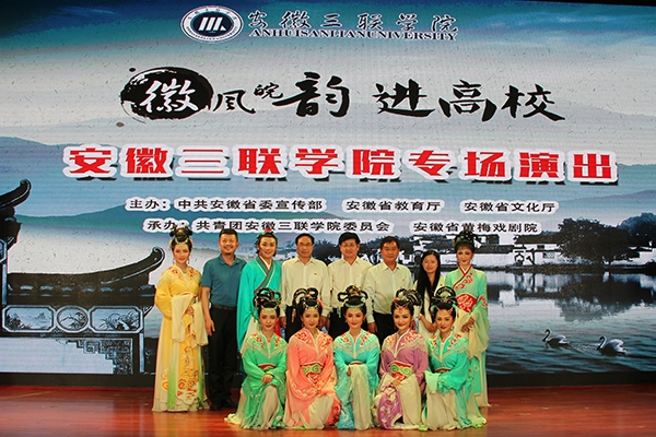 5月25日晚,由中共安徽省委宣传部、安徽省教育厅及安徽省文化厅共同主办,共青团安徽三联学院委员会、安徽省黄梅戏剧院承办的“徽风晥韵进高校”安徽三联学院专场演出在我校多功能厅隆重举行。校党委副书记鲁先长,安徽省黄梅戏剧院副院长王成,副校长秦永元、王瑞友、金哲,团委负责人、二级学院学管副院长及师生共600余人观看了演出。
