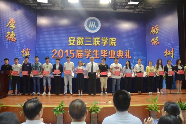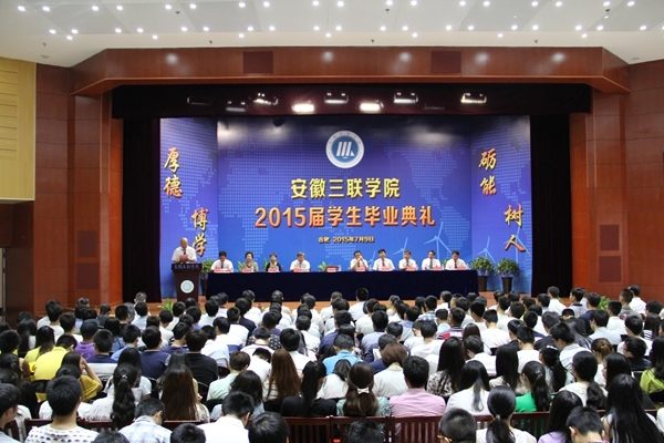 凤凰花开,骊歌响起,又是一年毕业季,又是一年扬帆起航时。7月9日,安徽三联学院2015届专科生毕业典礼分上下午两场,在图书馆多功能厅隆重举行。校长金会庆教授出席毕业典礼为同学们颁发毕业证书并致辞,三联集团及学校领导张方振、李明阳、鲁先长、姜发根、金美莲、秦永元、曹艳平、王瑞友、金哲出席典礼并在主席台就坐,典礼由副校长姜发根主持。