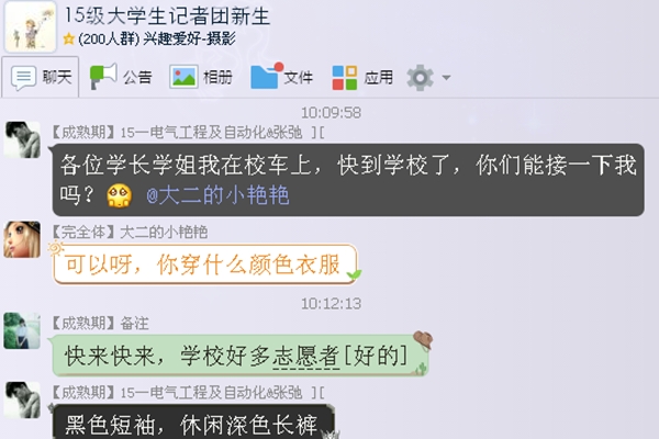 在通知书下发之前,各个新生QQ群就已经建立,并在贴吧、微博上进行宣传,新生加入就能认识学长学姐和同专业的同学,还能根据兴趣加入不同社团组织的新生群。