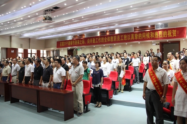 金会庆校长在会上做了热情洋溢的讲话,他代表学校向辛勤耕耘在教学科研一线的全体教师,向长期默默奉献的各级管理人员致以节日的问候和美好的祝愿,向受表彰的优秀教师表示最热烈的祝贺。
