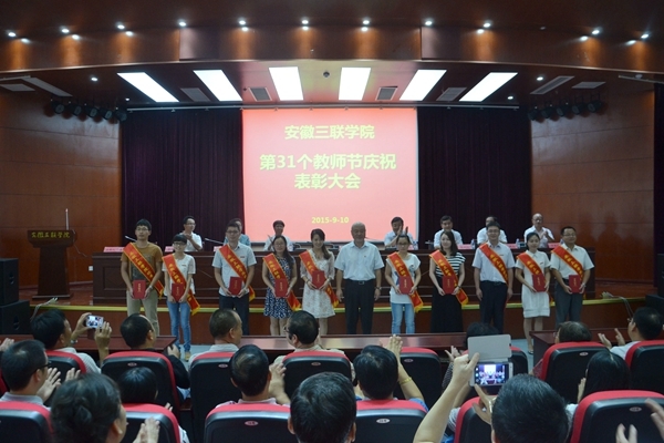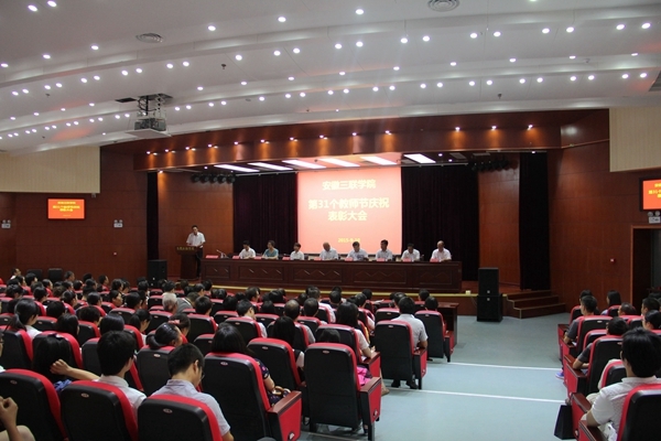 栽桃育李,名花朵朵酬墨客;崇文重教,妙歌曲曲颂园丁。9月10日中午,在欢度第31个教师节之际,我校在图书馆学术报告厅隆重举行第31个教师节庆祝表彰大会。校长金会庆教授出席大会为优秀教师颁发荣誉证书并致辞,在肥校党政领导出席大会。大会由副校长姜发根主持。