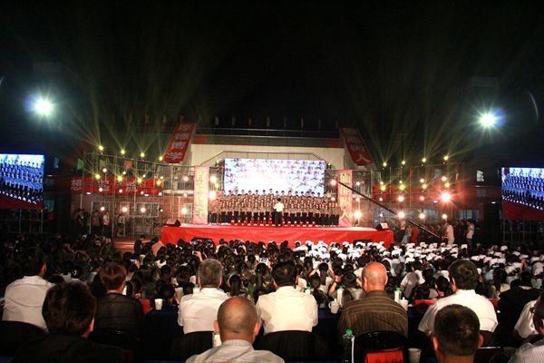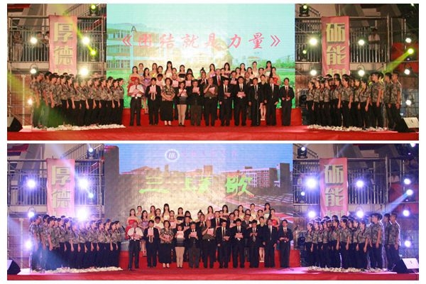三联集团领导、校领导大合唱《团结就是力量》、《三联歌》,共同祝愿三联越来越好。