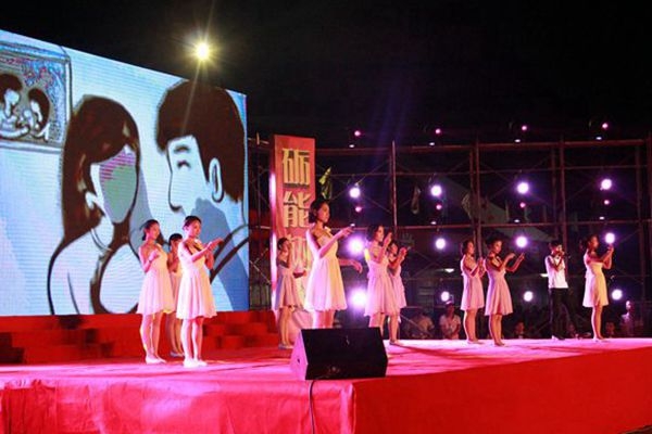 大学生艺术团《青春秀场》穿着精心搭配的时装,展现个性,秀出青春最美的姿态。之后,在音乐声中,秀场模特们合着主持人和大屏幕的同步介绍,引导三联集团领导和校领导一一和全校师生见面。