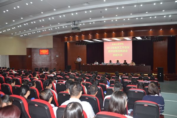 9月25日,我校在图书馆学术报告厅召开了2015年教学工作会议暨评估整改推进会总结大会。全体在肥党政领导,全校副科级及以上管理干部,专业带头人及培养对象、校院两级教学督导、教研室主任、实验中心主任、教学秘书、教师及辅导员代表参加会议。会议由副校长姜发根主持。