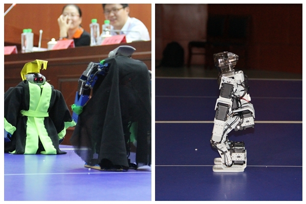 开幕式上合肥工业大学参赛团队带来的机器人舞蹈剧《荆轲刺秦》惊艳四座,赢得了满堂彩。队长吴磊说:“我们团队自成立以来就本着传统文化和现代科技相结合的原则,经过慎重考虑决定将《荆轲刺秦》这一段家喻户晓的历史赞颂用机器人的肢体语言表达出来,让更多的人感受传统文化与现代科技结合的魅力。”同样精彩的还有安徽建筑大学机器人团队带来的表演《小苹果机器人舞蹈》,迎合时尚,机器人以其娴熟的舞步,曼妙的舞姿,滑稽的动作博得全场欢呼。