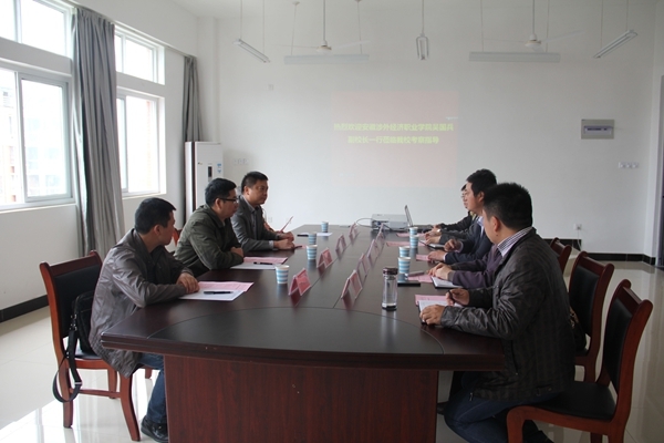10月29日下午,安徽涉外经济职业学院副校长吴国兵、机械工程系主任何忠祥、实验实训中心主任康震群等一行5人,就汽车类实验室建设来我校考察交流。我校副校长姜发根、实验室与设备管理处处长吴诗芬、交通工程学院执行院长凤鹏飞、机械工程学院执行院长吴明明等在机械工程学院G408会议室热情接待了吴校长一行。
