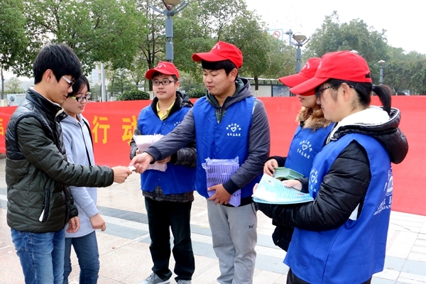 2015年12月1日,为迎接第28个世界艾滋病日,增强公众尤其是在校大学生预防艾滋病的安全意识,弘扬在校大学生热心公益、无私奉献的志愿者精神,我校青年志愿者服务中心的大学生志愿者们联合肥西县疾病预防控制中心、校医院等单位在合肥市内举行防艾知识普及活动。