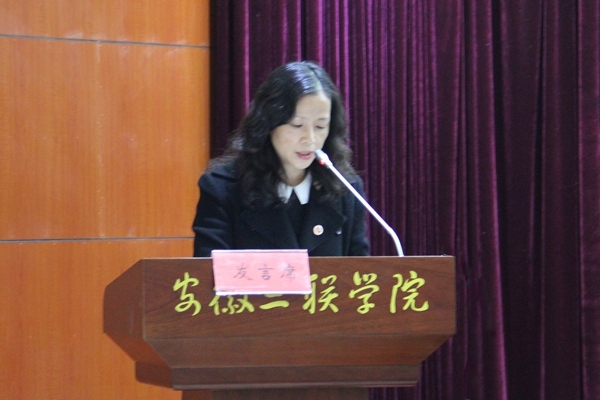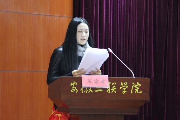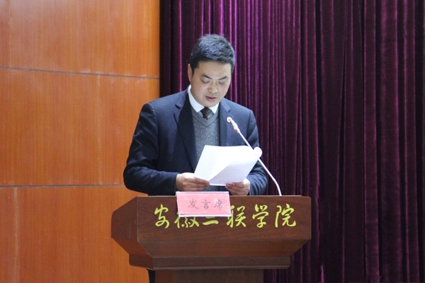 副校长姜发根同志宣读安徽三联学院2015年度招生工作表彰文件