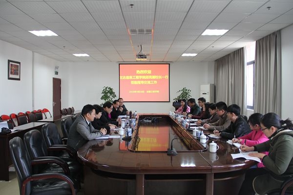 3月16日下午,安徽文达信息工程学院邱克副校长一行9人来我校考察交流。我校副校长王瑞友及教务处、实验室与设备管理处、就业创业处等部门负责人参加接待,并与来宾进行了深入的沟通与交流,交流会在T518会议室进行。