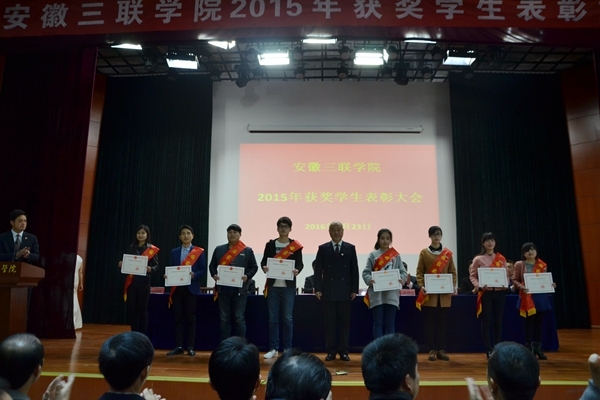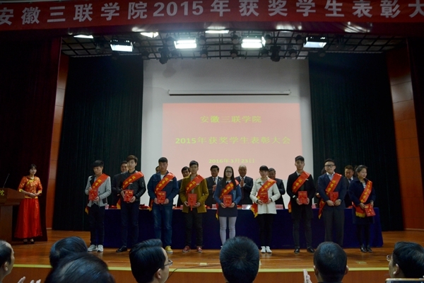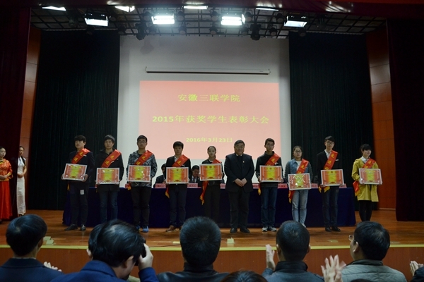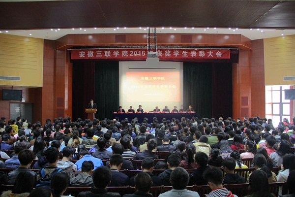 3月23日,安徽三联学院2014-2015学年优秀学生、先进班级表彰大会在图书馆多功能报告厅隆重举行。校长金会庆教授,省教育督导专员、校党委书记李明阳同志,在肥校党政领导,各单位负责人,受表彰学生代表以及600名师生代表参加大会。大会由副校长姜发根主持。