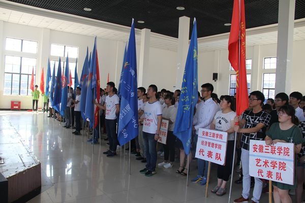 6月17日,我校2016年暑期文化科技卫生“三下乡”社会实践活动出征仪式在大学生活动中心隆重举行。校领导鲁先长、王瑞友、金哲及校工会、党办、综合办、教务处、学生处、就业创业处、图书馆、思政部等相关职能部门负责人出席,各学院党、团总支书记、校级重点实践团队指导教师、团队志愿者代表,共400余人参加了出征仪式。出征仪式由校团委书记李燕主持。