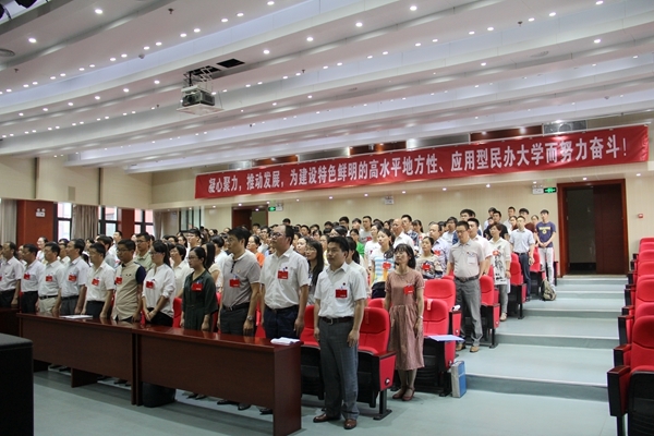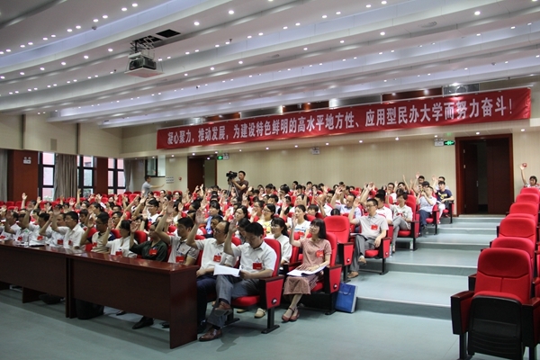 李明阳同志致闭幕词。他指出,这次大会明确了学校党建工作今后一个时期的奋斗目标,对学校党的建设的重要工作任务作出了战略部署。他表示,新一届党委成员要牢记全体代表、党员和师生员工的重托,以改革创新精神全面加强党的建设,从严治党,进一步提高党委领导水平,使党组织始终保持先进性,富有创造力、凝聚力和战斗力,成为推进学校改革发展的坚强政治领导核心。在全校各级党组织和广大共产党员的支持下,一定能够担负起大会赋予的时代重任,团结和带领全校师生员工,努力开创学校改革和发展的新局面。他要求,各位代表把大会的精神、提出的各项任务带回各自的单位,贯彻落实到各项工作中去;各级党组织要把学习贯彻本次党代会精神作为一项重要的政治任务抓紧抓实;全校党员干部和师生员工要不断提高工作的主动性、创造性和大局意识,努力为实现党代会提出的各项任务勇挑重担、争创贡献、争做先锋。号召全校共产党员在新一届校党委的领导下,团结和带动全校教职员工,解放思想,开拓创新,鼓足干劲,奋力拼搏,为全面开创特色鲜明的高水平地方性、应用型民办大学建设新局面而努力奋斗!