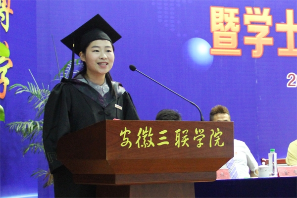财会学院董成凤同学及电子电气工程学院王慧同学代表全体毕业生发言,两位同学在发言中感谢学校对他们的栽培,感谢老师对他们的关心与爱护,感谢同窗好友的陪伴。表示即使步入社会,也会牢记“厚德博学,砺能树人”的校训,牢记学校领导以及老师的教诲,为理想奋斗,为母校争光。